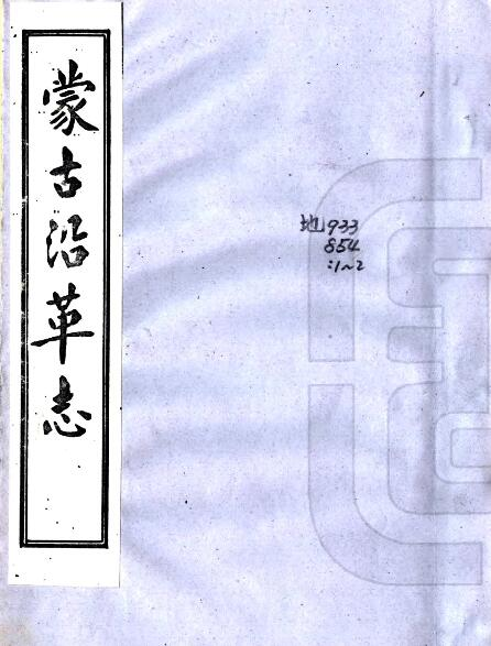 沈宗衍纂。清乾隆五十八年(1793)成书, 两卷,附一卷,全志约万余字,比较简略。卷上为漠南内蒙古,漠北外蒙古、贺兰山蒙古;卷下为准噶尔厄鲁特蒙古、青海厄鲁特蒙古;附卷为蒙古纪闻,这是一部较早记载内蒙古沿革的志书,虽然全书较为简略,但仍不失其参考价值。