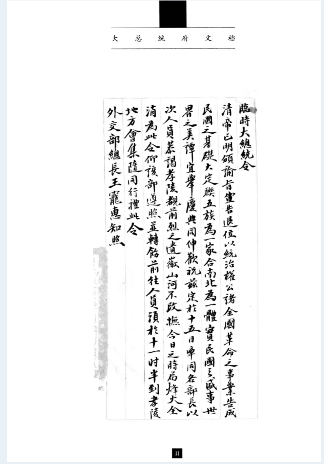 南京临时政府,这些档案共有8卷,原存于北洋政府外交部档案,袁世凯1912年3月接收南京时将档案一并带去北京。档案馆表示,孙中山在出任临时大总统时期的手迹、档案一直很少,这次发现的档案为相关历史研究提供了很大的帮助。