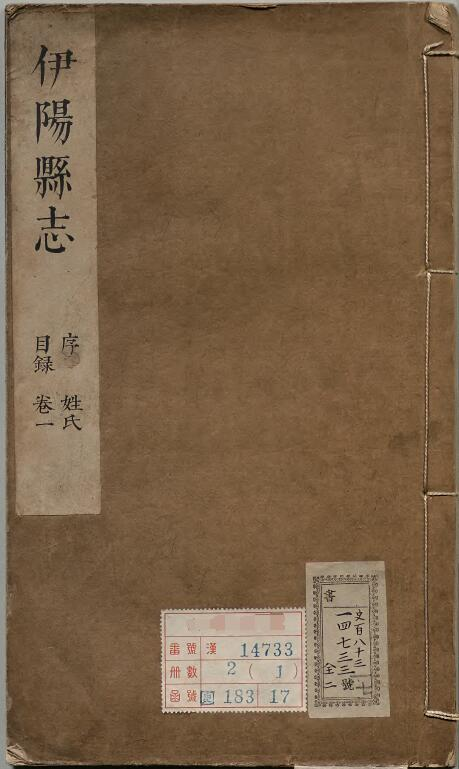 顺治伊阳县志二卷,前有孙光易序,柯南布政司修志信牌,修志姓氏及目录.