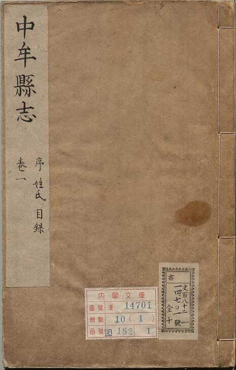 河南省郑州市地方志,〔康熙〕中牟县志,韩荩光修,冉觐祖纂。康熙十四年(1675)补刊本。十五卷,目为:沿革、星野、疆域、河渠、城池、建置、亭台、桥梁、祠庙、寺观、丘墓、户口、田赋、礼制、祥异、风俗、土产、官师、人物、列传、艺文、丛谈。康熙版中牟县志以《顺治中牟县志》为底本续修,对关系民生的地亩、田赋及水利、河渠,记述最为详尽,保留了较多的资料。康熙版中牟县志仅有孤本,藏于北京图书馆,缺卷8—11。此本为日本珍藏孤本,书本完整不缺卷,且字迹清晰高清,实属非常珍贵罕见。