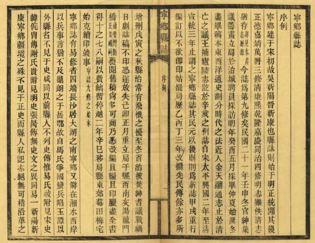 地区:湖南省长沙市宁乡市地方志,宁乡县志[民国版]三十一卷,周震麟修,刘宗向纂PDF高清电子版影印本下载。震麟,字道腴,两湖书院师范毕业, 任湖南省国民政府委员。宗向,字寅先,毕业於京师大学堂,民国任湖南高等师范校长,湖南大学文学系教授。民国宁乡县志於民国二十一年(1932)立局采访, 次年稿成,嗣後迭经增删改撰。至民国三十年始刊行问世。正文记事自宋太平兴国二年(978),止於 清宣统三年(1911),谓之《宁乡县志》;自民国元年至三十年六月止,计五卷,则别为《宁乡新志》。 县志分上下二编:上编记形势,凡五目,载地图、星气、疆界、山脉、水道;下编记故事、分记、录、传、谱四大类,凡十四目。民国宁乡县志形势编新绘之五万分之一地图,铜版制作,精审可观;记山脉水道,穷源竟委,并随所宜附录风俗、名胜、古迹,间录名贤诗、文、记、序以资考证。民国宁乡县志故事编财用录记民业详述农民之水利、田功、肥料、虫害;物产则专记土特名产如为山茶、灰汤鸭、盘溪娃娃鱼等,并详述湖南湘绣始源于宁乡之”针神”;志历录汇宁乡历代志乘序例、目录、弁言、附论为一编,有裨了解邑志编纂之沿革及大旨。民国宁乡县志尤重人物,官师、先民、女士诸传,几占全书篇幅三分之一,检索亦极便易。民国宁乡县志不循寻常方志体例,可谓别出心裁,记事侧重於经济和人文,对发展该地区自然资源有重要参考价值,不失为地方志中之佳作。有民国三十年 (1941)铅印本。《宁乡新志》全编约十万字,县年记及诸录记事详实,凡民国以来之党务、选举、官政、赋税、财政、仓储、教育、实业、兵备,以及自然灾害等,莫不织细备述。人物传虽仅记廖秉衡、朱剑凡、鲁涤平、叶开鑫等正传并附都六十五人,然县党部委员表及选举、官吏、校长、学籍、人物、忠烈诸表,能弥补人物传记篇幅之局限。兹编附於 《(民国)宁乡县志》之後。有民国三十年(1941)铅印本